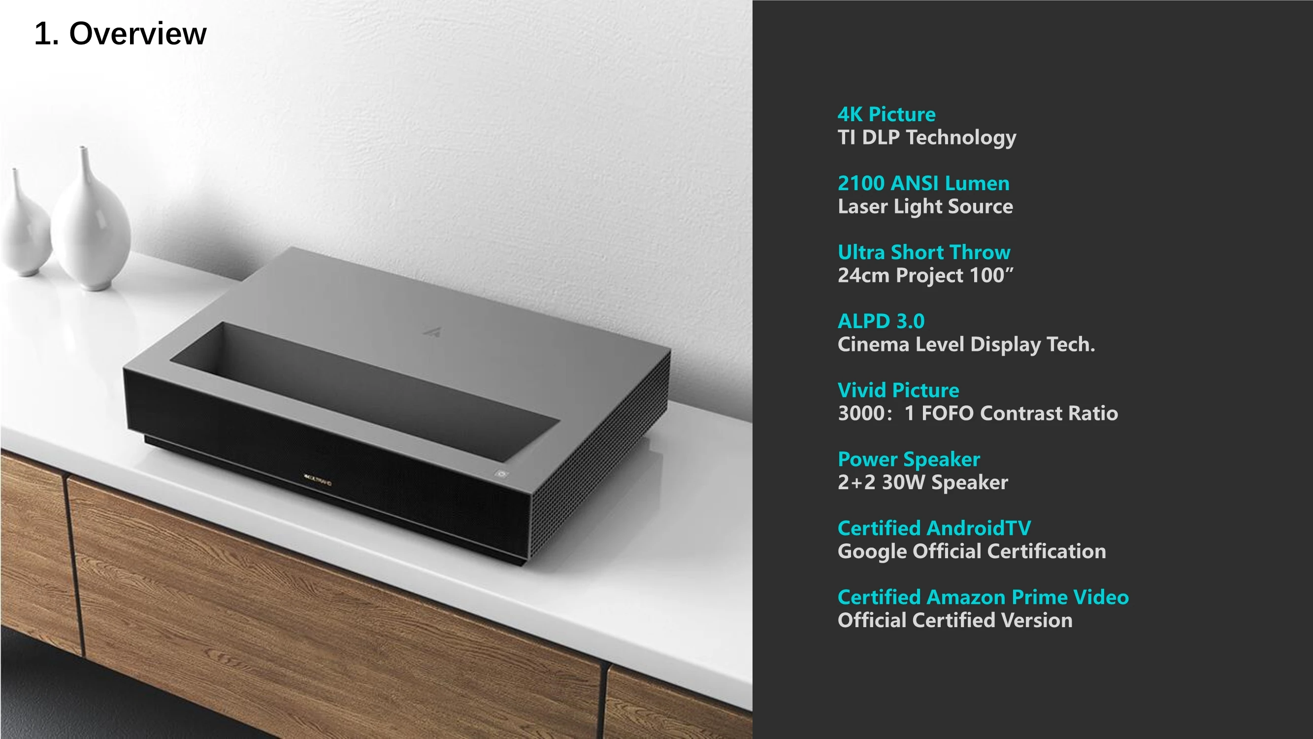 • Tiêu cự cực ngắn, chỉ cần cách tường 24cm để chiếu màn hình lớn 100 inch, không tốn diện tích, tạm biệt màn hình