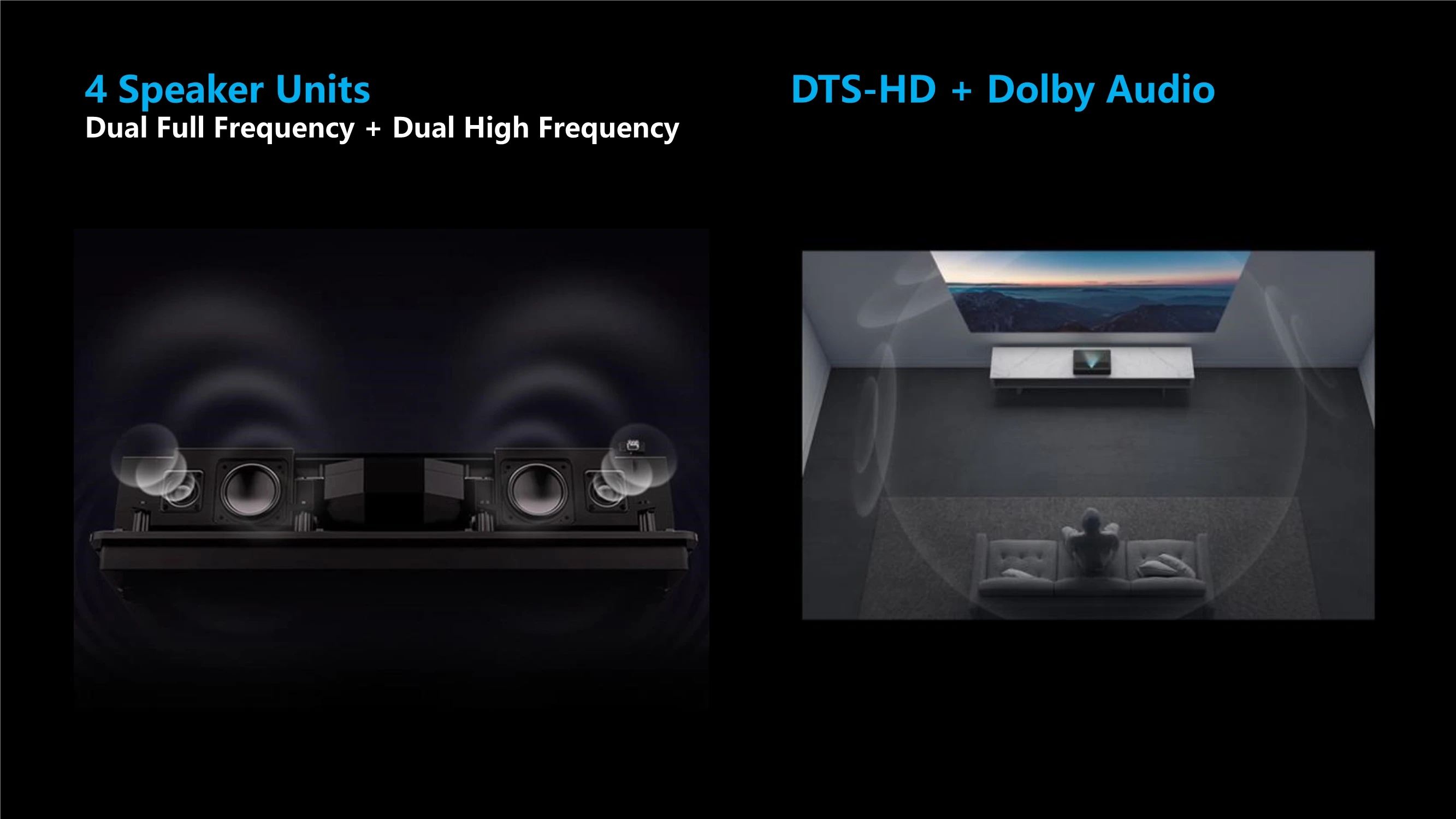 • Đặt trực tiếp vào tủ tivi để chiếu màn hình lớn 40 - 200 inch, màn chiếu tốt nhất cỡ 80 - 150 inch