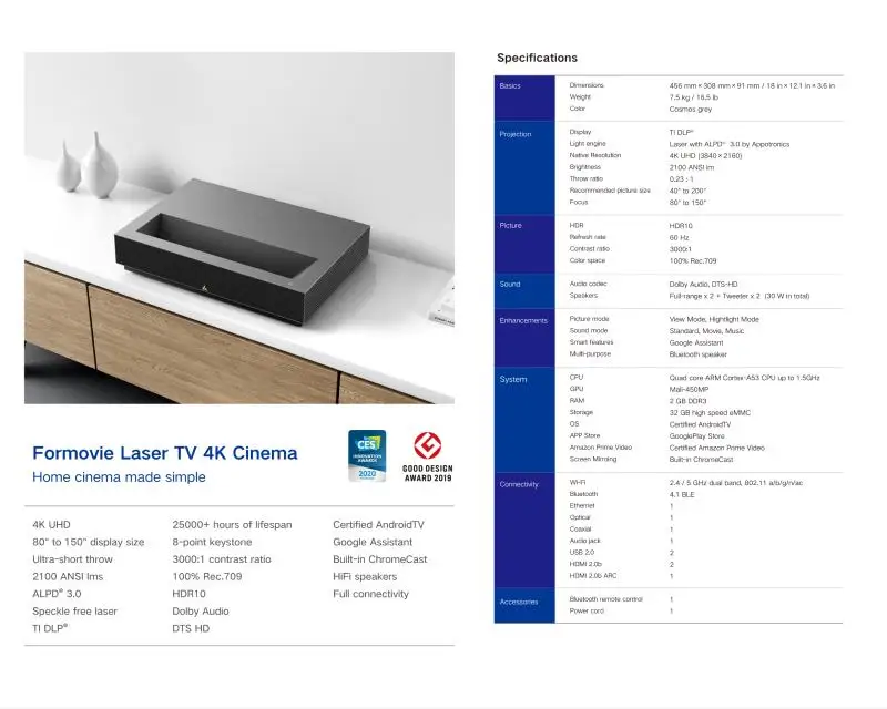 Máy chiếu phim Formovie 4k 2000 ANSI Lumen