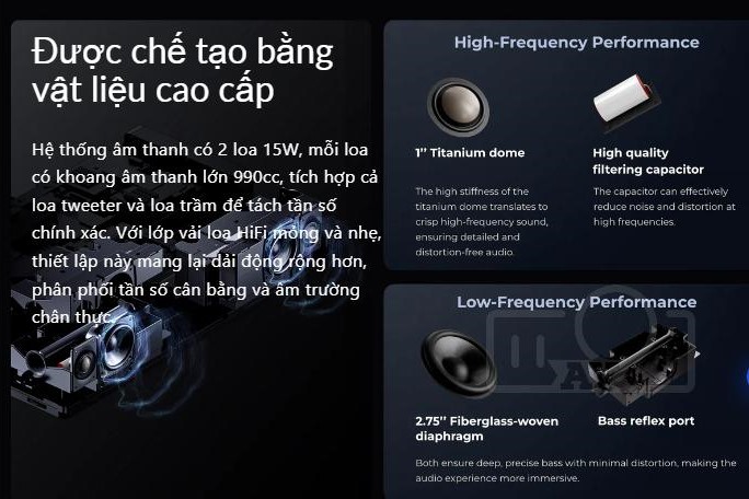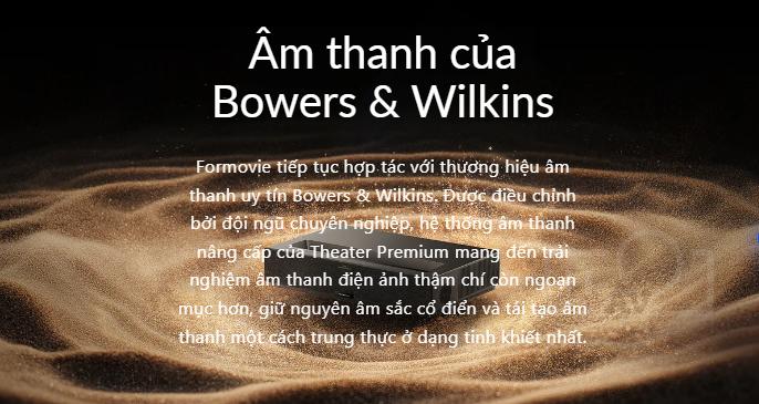 - Âm thanh: Hợp tác với Bowers & Wilkins, Formovie Theater mang đến trải nghiệm âm thanh chất lượng cao, được thiết kế riêng cho máy chiếu.