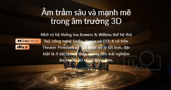 - Âm thanh nâng cao: Vẫn sử dụng loa của Bowers & Wilkins nhưng được nâng cấp với hỗ trợ Dolby Atmos và DTS-X, mang đến trải nghiệm âm thanh vòm sống động và bao trùm hơn.