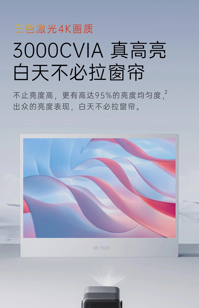 Máy chiếu JMGO N1S Ultra 4K với độ sáng lên đến 3000 CVIA lumen tương đương 4500 ansi lumen, giúp bạn có thể thưởng thức những hình ảnh tuyệt vời ngay cả trong phòng nhiều ánh sáng và không kéo rèm.